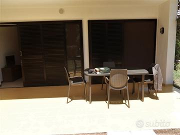 Nello splendido villaggio Victor Village alla Marina di Ugento (LE) fittasi mese agosto bilocale completamente ristrutturato al piano terra costituito da ampio giardino ad angolo patio attrezzato soggiorno con angolo cottura bagno e due camere da letto, Tutti i locali attrezzati con pale a soffitto. Tessera club per gli ospiti servizio spiaggia con ombrellone e due lettini riservati. Servizio biancheria e pulizia bisettimanale incluso