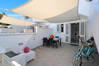 Affittasi bilocali di nuova costruzione da 2 e 4 posti letto, situati in un grazioso residence a circa 70 metri dalle spiagge di Posto Vecchio-Pescoluse, ideali per coppie o famiglie. Sono composti da stanza da pranzo climatizzata con angolo cottura, bagno, camera matrimoniale più letto a castello e giardino riservato. Sono dotati, inoltre, di WI-FI, zanzariere, tv satellitare, barbecue con possibilità di pranzare o cenare fuori, posto auto interno, lavatrice, doccia esterna per consentire agli ospiti un soggiorno più confortevole e rilassante e in dotazione gratuita due biciclette.