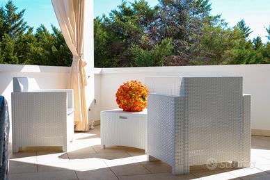 Affittasi bilocali di nuova costruzione da 2 e 4 posti letto, situati in un grazioso residence a circa 70 metri dalle spiagge di Posto Vecchio-Pescoluse, ideali per coppie o famiglie. Sono composti da stanza da pranzo climatizzata con angolo cottura, bagno, camera matrimoniale più letto a castello e giardino riservato. Sono dotati, inoltre, di WI-FI, zanzariere, tv satellitare, barbecue con possibilità di pranzare o cenare fuori, posto auto interno, lavatrice, doccia esterna per consentire agli ospiti un soggiorno più confortevole e rilassante e in dotazione gratuita due biciclette.