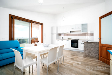 L'appartamento è composto da una grande sala (TOTALE VISTA MARE) con angolo cottura,3 camere da letto di cui una matrimoniale, le altre con due lettini singoli (per un totale di 6 posti letto) e bagno. Il pezzo forte della casa è la grande veranda vista MOZZAFIATO nella quale potrete passare dei meravigliosi momenti immergendovi negli odori e nei sapori della Sardegna. Potrete, se lo vorrete, mangiare in veranda. L'appartamento è completamento autonomo con ingresso assolutamente indipendente dotato di cortiletto dove potrete lasciare ombrelloni, sedie e tutto l occorrente per il mare. La casa è, inoltre dotata di posto auto esclusivo. L'immobile ovviamente possiede, lavatrice, Tv LCD, forno e le stoviglie necessarie per soddisfare il numero di ospiti. Data la posizione, (piccola collina affacciata sul mare) l'immobile è molto fresco ed arieggiato il ché mi ha fatto optare, pur avendo la predisposizione, di non istallare l'impianto di condizionamento. Vi assicuro che non ne sentirete la mancanza! È quella piccola ciliegina che renderà unico il vostro ultimo pezzo di torta. L'accuratezza del dettaglio e l'amore per il bello renderà speciale la vostra vacanza.Vi è un ulteriore casa nel medesimo plesso con una camera in meno ma con 6 posti.