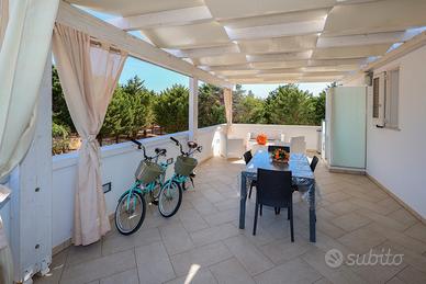 Affittasi bilocali di nuova costruzione da 2 e 4 posti letto, situati in un grazioso residence a circa 70 metri dalle spiagge di Posto Vecchio-Pescoluse, ideali per coppie o famiglie. Sono composti da stanza da pranzo climatizzata con angolo cottura, bagno, camera matrimoniale più letto a castello e giardino riservato. Sono dotati, inoltre, di WI-FI, zanzariere, tv satellitare, barbecue con possibilità di pranzare o cenare fuori, posto auto interno, lavatrice, doccia esterna per consentire agli ospiti un soggiorno più confortevole e rilassante e in dotazione gratuita due biciclette.