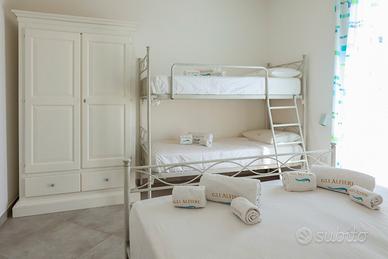 Affittasi bilocali di nuova costruzione da 2 e 4 posti letto, situati in un grazioso residence a circa 70 metri dalle spiagge di Posto Vecchio-Pescoluse, ideali per coppie o famiglie. Sono composti da stanza da pranzo climatizzata con angolo cottura, bagno, camera matrimoniale più letto a castello e giardino riservato. Sono dotati, inoltre, di WI-FI, zanzariere, tv satellitare, barbecue con possibilità di pranzare o cenare fuori, posto auto interno, lavatrice, doccia esterna per consentire agli ospiti un soggiorno più confortevole e rilassante e in dotazione gratuita due biciclette.