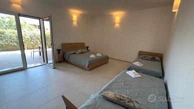 Bellissimo appartamento, appena ultimato, al piano terra di una villa a 50 mt dalla stupenda spiaggia di Balai. Dispone di 80 mq interni ed è composto da soggiorno / cucina con divano letto matrimoniale, un comodo bagno e una ampia camera da letto con un matrimoniale e due letti singoli (Totale 6 posti letto). All'esterno troviamo una bella veranda di 80 mq con giardino completa di tavolo per cenare all'aperto in tutta privacy e tranquillità, inoltre dispone di posto auto privato interno con cancello automatico. A disposizione degli ospiti smart TV 50 pollici a schermo piatto, Wi-Fi gratuita, aria condizionata caldo/freddo.