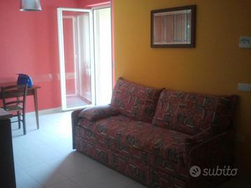 L'appartamento è un bilocale 2/4 posti letto, al primo piano, nuovo, composto da: camera da letto matrimoniale (con vista mare e sul terrazzo), bagno con finestra e box doccia (colonna massaggio cervicale e dorsale), soggiorno con divano letto 2 posti singoli, cucina e tavolo con 4 sedie, angolo tv, ampio terrazzo/solarium/veranda (unico in affitto in tutto il palazzo) completo di un secondo tavolo da esterno con sedie, sdraio e pozzetto/lavanderia. L'appartamento è ottimamente esposto essendo fronte mare-vista mare infatti in estate il sole riscalda soltanto nelle primissime ore della mattinata lasciando fresco l'ambiente. L'appartamento è dotato di tutti i confort ed elettrodomestici: aria condizionata in tutte le stanze, serrande elettriche, frigo, lavastoviglie, forno a microonde, lavatrice, congelatore, ferro da stiro; ed ovviamente tutte le stoviglie necessarie.