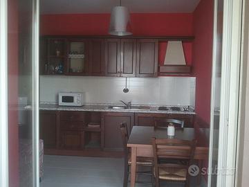 L'appartamento è un bilocale 2/4 posti letto, al primo piano, nuovo, composto da: camera da letto matrimoniale (con vista mare e sul terrazzo), bagno con finestra e box doccia (colonna massaggio cervicale e dorsale), soggiorno con divano letto 2 posti singoli, cucina e tavolo con 4 sedie, angolo tv, ampio terrazzo/solarium/veranda (unico in affitto in tutto il palazzo) completo di un secondo tavolo da esterno con sedie, sdraio e pozzetto/lavanderia. L'appartamento è ottimamente esposto essendo fronte mare-vista mare infatti in estate il sole riscalda soltanto nelle primissime ore della mattinata lasciando fresco l'ambiente. L'appartamento è dotato di tutti i confort ed elettrodomestici: aria condizionata in tutte le stanze, serrande elettriche, frigo, lavastoviglie, forno a microonde, lavatrice, congelatore, ferro da stiro; ed ovviamente tutte le stoviglie necessarie.