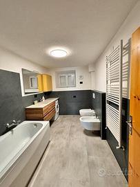 Bagno principale con vasca, wc, bidet e lavatrice