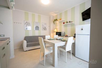 "Onda del Cielo", 35 mq, è al settimo ed ultimo piano di una palazzina di nuova ristrutturazione, si compone di una camera da letto, con letto matrimoniale, ed una zona giorno con divano letto alla francese. Disponibile lettino ad ombrello per bimbo. Biancheria da letto. Funzionale angolo cottura con piano fornelli ad induzione, cappa aspira odori, frigorifero, forno elettrico, macchina elettrica del caffè, stoviglie, tovagliato, suppellettili, servizi piatti, tazze, tazzine e bicchieri. Bagno con doccia e servizi, asciugacapelli, lavatrice e kit teli da bagno personali. Stendino, scope, scopettoni, secchi, asse e ferro da stiro.