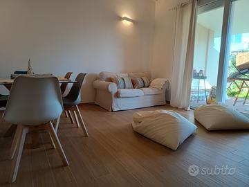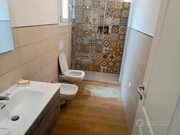 Moderna casa bifamiliare situata in una zona tranquilla ed elegante di Valledoria, a soli 10 minuti a piedi da negozi e caffetterie. La proprietà offre 2 camere da letto dal design raffinato (di cui una con bagno privato), 2 docce walk-in, un'ampia e luminosa zona giorno open space e una comoda lavanderia. A disposizione degli ospiti: Wi-Fi gratuito, asciugamani freschi e biancheria da letto di qualità, due giardini privati con patio, una doccia esterna e un magnifico solarium sul tetto di 23 m² con pergolato in legno, ideale per rilassarsi sotto il sole della Sardegna. La casa dispone inoltre di parcheggio privato interno con cancello e di un'atmosfera serena, perfetta per una vacanza all'insegna del comfort e del relax. Via Paolo Borsellino 9 interno 2 .Valledoria Disponibilità sabato-sabato giugno euro 900per settimana. sabato-sabato settembre euro 1000 per settimana. sabato-sabato ottobre euro 750 per settimana CIN:IT090079C2000U2219