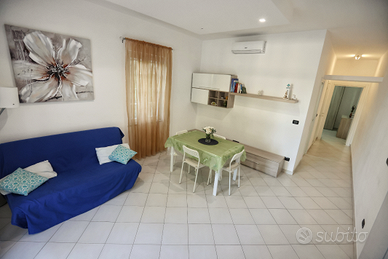 Soggiorno, cucina, 2 camere da letto, 1 bagno, veranda coperta e veranda scoperta, giardino con prato all'inglese.