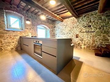 Abbiamo pensato di offrire ai nostri clienti tutto il casolare, così da rendere la vacanza completamente riservata. Nel piano inferiore troverete la cucina attrezzata con piano ad induzione, forno, frigorifero e lavastoviglie oltre al necessario per cucinare; la veranda con forno a legna per i pranzi e cene all'aperto, la sala da pranzo, sala tv/lettura e un bagno con lavanderia.