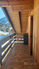 La mansarda ha un doppio affaccio con ampi balconi, a valle con vista sul Catinaccio e a monte con vista sui Monzoni.
