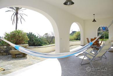 Dal portico è possibile godersi una bella vista sul mare ed e' dotato di due sdraio, un tavolo con quattro sedie in legno, un'amaca e un barbecue.