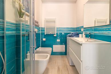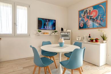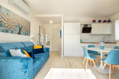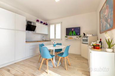 Appartamento di nuova costruzione al secondo piano con ascensore, vista mare, nella riservata e signorile zona Calabona ad Alghero, con terrazzo abitabile. L'appartamento è nuovo, luminoso e spazioso. E' composto da soggiorno con comodo divano matrimoniale e angolo cottura con terrazzo vista mare, camera matrimoniale e bagno con doccia e lavatrice. La stanza da letto affaccia nel lato interno e rimane riservata e silenziosa, così come la zona e la stessa via Parc Guell. L'appartamento è completamente condizionato e dotato di infissi con vetri termici e zanzariere. Arredato a nuovo e corredato di lavatrice, lavastoviglie, phon, forno a microonde, bollitore e tostapane elettrico, minipimer e frullatore, ferro da stiro, aspirapolvere e macchina da caffè. TV nella stanza matrimoniale e TV Smart di nuova generazione nell'ingresso soggiorno. Il palazzo è nuovo e dotato di un comodo ascensore. La location è una delle piu ricercate di Alghero e a pochi passi si trova il Mirador, la bellissima piazza Giuni Russo e l'esclusiva passeggiata del Lungomare Valencia che porta al mare e in centro. Nel tragitto numerosi bar, ristoranti, pizzerie, pub, cinema e gelaterie.