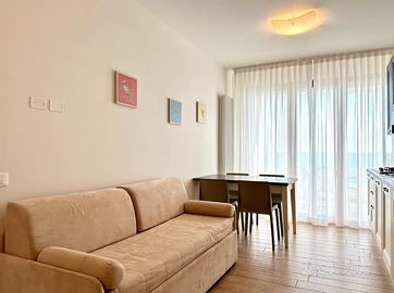Affittasi appartamenti in contesto condominiale situati fronte mare in zona piazza Aurora. Le soluzioni bilocali dispongono di una bellissima terrazza fronte mare arredata per poter pranzare all'aperto. Composto da un ampio soggiorno con vetrata sul mare e divano letto, cucina attrezzata, bagno con box doccia e camera con letto matrimoniale e letto singolo.
