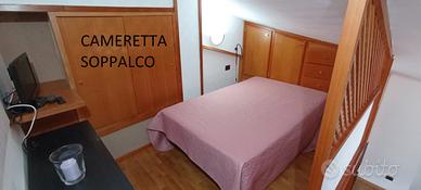 Al piano sopra : Cameretta con letto matrimoniale alla francese - Bagno .