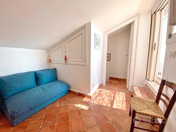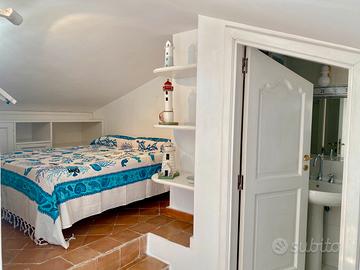 Ingresso privato, la casa signorile si sviluppa su due piani ed è composta: al primo piano da 1 camera con letto singolo, al secondo piano da 1 camera con letto matrimoniale mansardata e 1 divano letto (una piazza e mezza) comodissimo per 2 bambini piccoli o un ragazzo e da 1 bagno con finestra, bidet e doccia. Nella camera è presente una nuovissima tv di 32 pollici con braccio così da poter essere vista da qualunque angolo della casa (letto, divano, terrazzo).