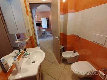 Appartamento al piano terra in un villa residence a 250m dalla spiaggia composto da 2 camere da letto doppie, una cucina/soggiorno con angolo divano letto alla francese , un bagno e un vano biancheria .