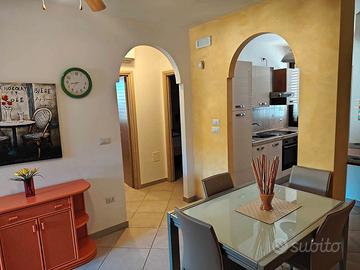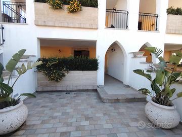 Appartamento al piano terra con ampio cortile antistante e spazio esterno attrezzato composto da 2 camere da letto doppie , un' area giorno soggiorno/cucina con angolo divano letto da 1 piazza e mezza.Puo' ospitare fino ad un massimo di 5/6 persone dista dalla spiaggia appena 250m.dalla spiaggia di Pescoluse e a 100 m dai servizi della Marina.