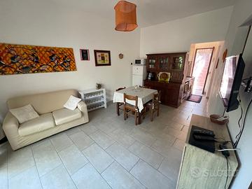PERIODI DISPONIBILI: , aprile, maggio, giugno,luglio, settembre, ottobre. Affitto minimo settimanale. Le dimensioni e condizioni della spiaggia dipendono esclusivamente da venti, onde, correnti e maree. A Santa margherita di Pula, località Pinus Village, a 170metri dalla spiaggia si affitta, in vialetto interno centralissimo con parcheggio privato residenti, villetta a schiera piano terra ristrutturata con 5 posti letto, composta da salone/sala da pranzo, 2 camere ( 1 matrimoniale e 1 con letto a castello, soggiorno con divano letto), zanzariere, angolo cottura con forno, macchina per il caffè a capsule, bagno con doccia, lavatrice, asciugacapelli, ferro da stiro, doccia esterna, giardino con patio scoperto e coperto, barbecue, tv con digitale terrestre incorporato, aria condizionata, dotazione spiaggia (ombrelloni, lettini, sdrai) completamente arredato, anche a settimana intesa da sabato a sabato, prezzi in base al periodo ( i prezzi si intendono compresi di consumi, lenzuola e asciugamani e spese di pulizia di uscita). Nel villaggio è presente il bar ristorante/pizzeria. A 10 minuti di macchina da Pula e dal sito archeologico di Nora, a 5 minuti di macchina dalle spiagge di Chia e a 10 minuti di macchina dalla spiaggia di Tuerredda. Vicinanza a ristoranti di Chia (Mirage, Bithia, ristorante Chia) e Pula ( da Giancarlo, Eleonora, Sa Macinera) market e negozi (centro commerciale "La Pineta", market La Cantoniera, Calaverde). È presente nel villaggio servizio bus da e verso Pula da maggio ad ottobre.