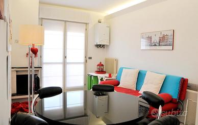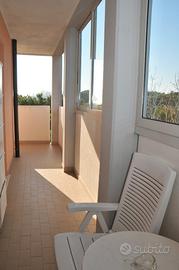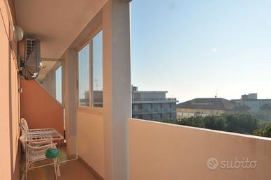 Ampio trilocale al quarto piano con ascensore e posto auto riservato, si compone di: ingresso, soggiorno con angolo cottura con accesso al terrazzo perimetrale verandato, camera matrimoniale con accesso al terrazzo, camera con due letti singoli, bagno finestrato con box doccia.