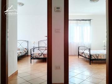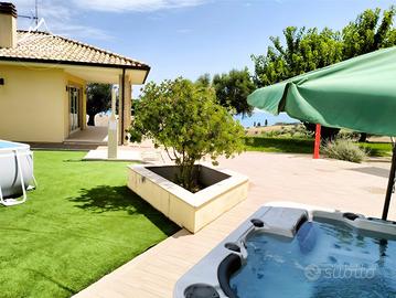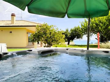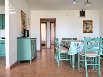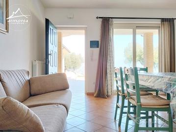 Accogliente appartamento al piano terra con vista mare panoramica, situato in un complesso dotato di piscina bimbi, vasca idromassaggio, giardino e barbecue. L'alloggio dispone di una porzione di portico attrezzato con tavolo e sedie per esterno, disponibile parcheggio recintato. Ideale per famiglie o gruppi di amici che cercano una soluzione comoda, in un contesto curato e panoramico. Caratteristiche dell'Appartamento: o Tipologia: Trilocale 6 posti letto (camera matrimoniale, camera con 2 letti, soggiorno con divano letto 2 posti). o Dotazioni interne: cucina attrezzata con utensili, bagno con doccia, ripostiglio, TV, lavastoviglie, forno elettrico, ventilatore. o Esterni: Porzione di portico attrezzato con tavolo, sedie, 2 lettini e un ombrellone. o Servizi: Wi-fi, posto auto in parcheggio recintato o Biancheria da letto fornita, biancheria da bagno e da cucina non disponibile. Servizi del Complesso: Piscina per bambini e vasca idromassaggio esterna ad uso comune (attive da giugno a settembre), Giardino condominiale e area barbecue, Doccia solare e lavanderia condominiale. Distanza dal mare: 2 km.