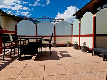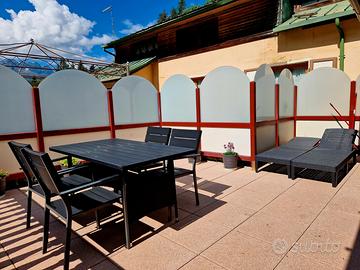 PONTE DI LEGNO CON TERRAZZO PRIVATO Bilocale in piccolo contesto di soli 3 appartamenti, di 45 mq (per 4 persone max) situato a 900 m dal centro di Ponte di Legno. Terrazzo privato attrezzato con lettini, tavolo e sedie. Connessione wifi e parcheggio gratuiti. Disponibile per affitti brevi. Prezzi per 7 notti: Maggio da euro 450,00 Giugno da euro 500,00 Luglio da euro 600,00 Agosto da euro 850,00 Disponibilità e dettagli in privato.