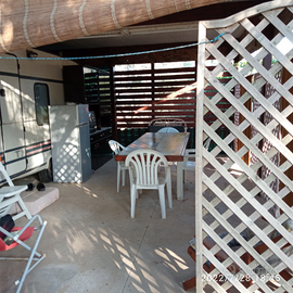 Affitto uso vacanza porticato con dentro roulotte tre e quattro posti letto, in giardino di circa 3000 mq dotato di acqua,luce gas, e servizi , tutto recintato con tantissimo verde come da foto, sito a torre san Giovanni marina di Ugento (LE) disponibile da giugno a settembre, distanza dalla spiaggia 140 metri, a 400euro la coppia x settimana ,per ulteriori informazioni mi potete contattare, al 389 9730176grazie.