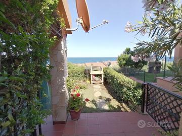 Villino inserito in villaggio turistico 1 letto matrimoniale, 1 letti singoli,pale a soffitto,angolo cottura,zona pranzo , bagno con doccia,lavatrice,microonde,tv sat,frigorifero-frezzer,spazio esterno coperto con giardinetto e barbecue . Rilevatori monossido-gas-fumi-antincendio Nelle vicinanze Ristoranti Pizzerie, campi da tennis-calcetto, piscina a pagamento e Spa. Spiaggia libera a 300 mt, scogli a 150 mt