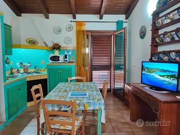 Composta da soggiorno con angolo cottura in muratura, due camere da letto matrimoniali, bagno con doccia, divano letto in soggiorno.