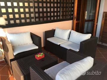 L'immobile è composto da camera matrimoniale, bagno, soggiorno e ampia terrazza panoramica con salottino e tavolo, perfetta per momenti di relax all'aperto.