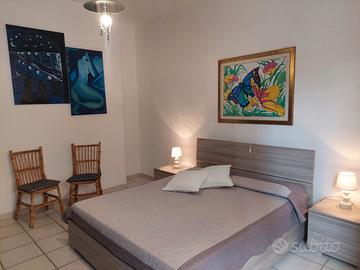 DISPONIBILE anche in AGOSTO causa disdetta Ampio appartamento al piano rialzato, separato dalla strada da un giardinetto condominiale con siepe ed alberi che garantisce privacy e può ospitare biciclette. La casa può ospitare 5/6 persone ed è così composta: grande soggiorno con zona pranzo, divano, un divano letto singolo, finestra con vista mare ed accesso ad uno dei due balconi, la cucina abitabile, completamente attrezzata, ha accesso al medesimo balcone della sala, una spaziosa camera matrimoniale con armadio quattro stagioni, una grande camera luminosa con accesso ad un secondo balcone e tre nuovi letti singoli. Il balcone affaccia sul retro dell'appartamento ed offre la possibilità di stendere i panni, inoltre è fornito di un comodo lavatoio esterno. L' ampio bagno finestrato ha il box doccia e la lavatrice. Nelle immediate vicinanze dell'appartamento sono presenti parcheggi liberi. Possibilità di accedere direttamente sia la spiaggia libera che a quella attrezzata proprio di fronte alla casa. Ottima posizione rispetto alla bellissima passeggiata lungomare completamente rinnovata e ad alla pista ciclabile che porta verso le spiagge meno popolate in direzione di Marina di Grosseto. Il centro è raggiungibile con una passeggiata di 10 minuti gran parte in zona pedonale il quartiere è dotato di tutti i servizi. Ci dispiace ma non possiamo accettare animali domestici.