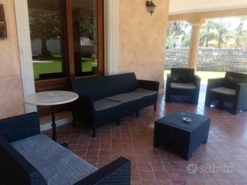 Villa prestigiosa sita in Giardini Naxos, zona turistica Recanati, composta da salone quintuplo, 4 camere da letto climatizzate, 3 bagni più una lavanderia. Ampio giardino con piscina privata. Terrazzo e grande patio prospicente alla piscina. La villa è dotata di ogni confort al fine di una serena vacanza. La villa ospita un massimo di 10 persone.