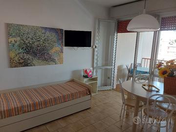 Ampio soggiorno con comodo divano letto con letto estraibile (sono due letti singoli), TV led 32 pollici, parete di cottura attrezzata con anche lavatrice, bel terrazzo abitabile con tavolo per mangiare all'aperto, camera matrimoniale spaziosa (eventualmente si può aggiungere un lettino per un bimbo), bagno con box doccia.