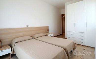 A soli 50 mt. dalla Spiaggia di Levante ed a 200 mt. dal centro storico. Ampio appartamento al piano terra con scoperto esclusivo e posto auto. Immobile di grandi dimensioni composto da scoperto esclusivo pavimentato e dotato di tavolo e sedie da esterno, ingresso-soggiorno con angolo cottura, disimpegno, ampia camera matrimoniale con letto matrimoniale e letto singolo, seconda camera con letto matrimoniale, camera con letto singolo, terza camera con letto matrimoniale, bagno finestrato con box doccia e lavatrice. Dotazioni e servizi inclusi: climatizzatore, lavatrice, forno a microonde, frigo con congelatore, lavastoviglie, tv, posto auto, N° 02 posti spiaggia ( due ombrelloni e quattro lettini), piscina condominiale e giardino esclusivo, pulizie di cambio, consumi, diritti d'agenzia compresi. WIFI ad euro 20 la settimana, su prenotazione, salvo disponibilità dispositivi. Divieto di fumo all'interno dell'immobile.