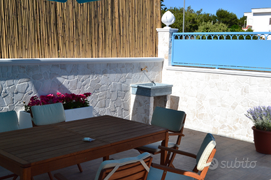 Villetta indipendente con ampia veranda e cucina esterna realizzata su due livelli, acqua potabile 1 camera da letto adulti 1 camera da letto per ragazzi con letto a castello divano letto in cucina 1 bagno interno e 1 bagno esterno. Distanza dal mare e dal lido Tuareg circa 200 mt. Fittasi periodo estivo. Per ulteriori informazioni: Michele 3355682304