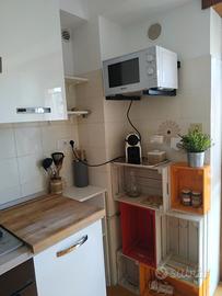 Grazioso appartamento arredato al 3 piano, composto da due camere da letto, un bagno con box doccia e lavatrice, una cucina completa di elettrodomestici, stoviglie, macchinetta caffè, microonde e piccolo divanetto. Grande terrazzo con tettoia, tavolo, sedie e sdraio. il palazzo è all'interno di un parco tranquillo con parcheggio gratuito sotto casa. A pochi passi ci sono supermercati, macellerie, farmacia, frutteria e a 10 minuti camminando la spiaggia più vicina.
