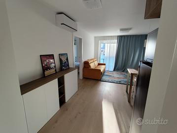 Appartamento con finiture di pregio primingresso in classe energetica A3, aria condizionata e riscaldamento a pavimento. Troverete una camera matrimoniale con armadio e tv, un comodo divano letto matrimoniale in soggiorno con televisore ed un angolo cottura attrezzatissimo. E' presente un balcone con tavolo e tenda elettrica. Il bagno è molto comodo con doccia lavandino e bidet.
