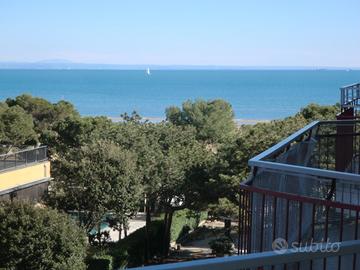 Residence di grandi dimensioni fronte mare, servito da ascensore, parcheggio condominiale non numerato e piscina. Appartamenti situati al 4°piano lato est, composto da camera matrimoniale con terzo letto apribile, soggiorno con angolo cottura e divano letto singolo, TV, bagno con doccia e balcone vista mare. Aria condizionata.