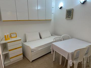 Residence Villaggio Rosa a Lido Marini - Ugento, appartamento piano terra (massimo 4 persone), camera da letto matrimoniale, soggiorno/angolo cottura, divano letto 2 posti, bagno e 60mq giardino, a 200 metri da spiaggia libera e/o attrezzata. Dotato di tutti i comfort (aria condizionata, forno, tv, lavatrice, etc), campo da calcetto e da tennis all'interno del Residence.