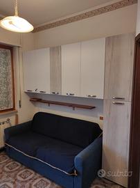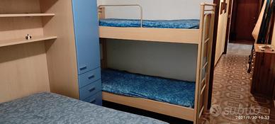 Bilocale con 6 posti letto , accessoriato cosi : bagno con doccia lavatrice phon asciugacapelli, cucina con forno frigo doppia porta , camera con letto matrimoniale e letto a castello , divano con due letti singoli , ventilatore. Terrazzo attrezzo x poter pranzare , e giardino privato . Posto auto condominiale . Alloggio convenzionato con spiaggia privata .