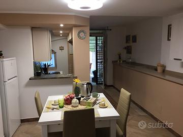 Residenza Gialla - ideale per trascorrere una vacanza da sogno al centro della cittadina di Tropea, dotata di tutti i confort compreso aria condizionata. l'appartamento, è un Loft, si sviluppa su due livelli zona giorno a piano terra con un bagno completo, un angolo cottura, un ambiente per poter pranzare comodamente ed un soggiorno con divano letto, mentre al livello superiore c'è la zona notte con un letto matrimoniale, due letti singoli ed un bagno di servizio. Si possono raggiungere n.6 posti letto. Si trova a 300 m dalla spiaggia quindi dai lidi più belli di Tropea tra cui il Blanca Beach, a 400 m dal centro storico ed a 350 m dalla stazione ferroviaria. Il quartiere è centralissimo quindi si può fare tutto comodamente a piedi. Nelle immediate vicinanze ci sono i migliori ristoranti, bar, supermercati, pescherie e banche. Si può arrivare comodamente in macchina ed il parcheggio è libero in strada sotto il palazzo. La residenza si trova a 100 metri dall'isola pedonale e quindi dalla ZTL. Il prezzo è indicativo e varia in funzione del periodo e del numero di persone.