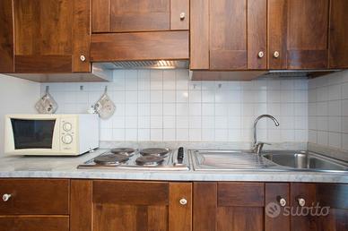 Appartamento trilocale composto da due camere matrimoniali e una camera con due letti singoli, cucina e bagno con doccia.