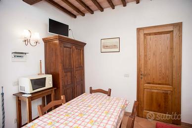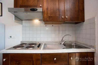 Appartamento bilocale con camera da letto matrimoniale, cucina con divano letto matrimoniale, bagno con doccia.