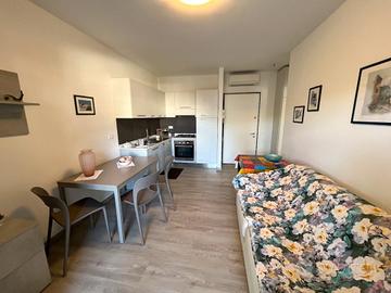 Affitto dal 27 giugno al 29 agosto, massimo 2 persone. Appartamento completamente ristrutturato, situato in un residence immerso nel verde, al primo piano. Composto da una camera matrimoniale, soggiorno con angolo cottura, bagno, TV, aria condizionata, terrazzo e piscina. Distanza dal mare circa 350 metri