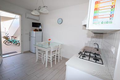 Affittasi bilocali di nuova costruzione da 2 e 4 posti letto, situati in un grazioso residence a circa 70 metri dalle spiagge di Posto Vecchio-Pescoluse, ideali per coppie o famiglie. Sono composti da stanza da pranzo climatizzata con angolo cottura, bagno, camera matrimoniale più letto a castello e giardino riservato. Sono dotati, inoltre, di WI-FI, zanzariere, tv satellitare, barbecue con possibilità di pranzare o cenare fuori, posto auto interno, lavatrice, doccia esterna per consentire agli ospiti un soggiorno più confortevole e rilassante e in dotazione gratuita due biciclette.