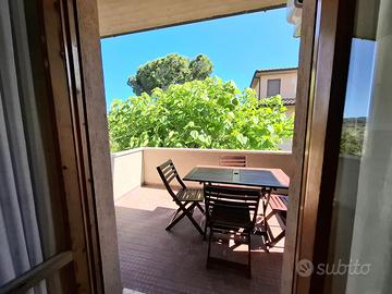 A Follonica Pratoranieri, in via isola dell'Asinara 13, a circa 100 metri dalla spiaggia, grazioso appartamento trilocale con 5/6 posti letto, in buonissimo stato al primo piano di piccola palazzina. L'appartamento è composto da soggiorno con un posto letto, angolo cottura, camera con letto matrimoniale e letto singolo, camera con letto matrimoniale e bagno. Terrazza abitabile ben ombreggiata e attrezzata con tavolo e sedie in legno, adatta per soggiornare all'aperto. Nella corte condominiale si possono lasciare le biciclette o/e gli oggetti del mare.