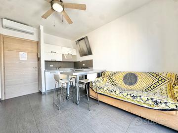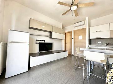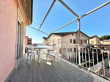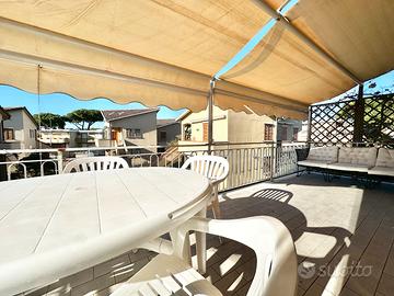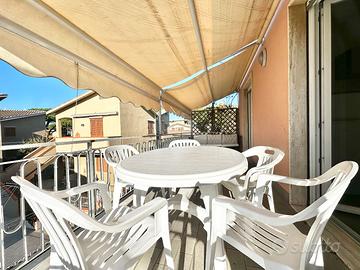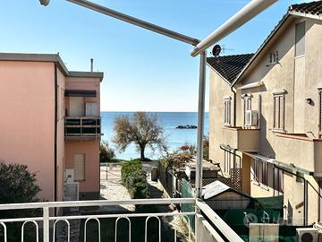 Appartamento trilocale recentemente ristrutturato e climatizzato, sito al primo piano di piccola palazzina, a pochi passi dalla spiaggia libera e a pochi metri dalla spiaggia attrezzata, Composto da soggiorno con angolo cottura e con divano letto matrimoniale, camera matrimoniale, camerina con due letti singoli e bagno con box doccia. Totale 4 posti letto nelle camere e 2 nel divano letto nel soggiorno. Terrazza abitabile attrezzata con tavolo e sedie, che abbassando le tende di trasforma in un piacevole salotto da cui si vede il mare.