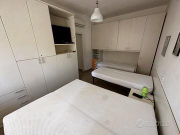 Rif. 81 Follonica, Zona Nuova, via Ponchielli. Trilocale climatizzato, sito al primo piano s/a, composto da soggiorno con parete cottura e divano letto matrimoniale, corredato da balcone abitabile, due camere matrimoniali di cui una con letto singolo, e due bagni di cui uno con box doccia. Questo appartamento si trova in una ottima posizione per trascorrere le vacanze. E' ubicato a pochi metri dalla spiaggia nel quartiere di Zona Nuova, a nord di Follonica e adiacente al centro che dista circa 700 metri, ricco di servizi. Nelle immediate vicinanze dell'appartamento ci sono dei supermercati, attività per la cura della persona, bar ristoranti e giochi per bambini. Inoltre la pineta di ponente, che si scorge dal balcone dell'appartamento, scorre lungo mare regalando al quartiere ampi spazi verdi dove poter passeggiare. A circa 100 metri, superata la pineta si estende la spiaggia sia libera che privata.