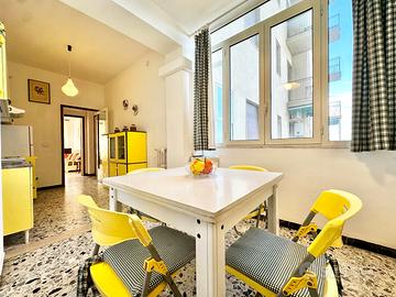 Follonica, zona Centrale, via Dante Alighieri 58. Grazioso trilocale ubicato al terzo piano c/a. L'appartamento è composto da ampia cucina abitabile con zona pranzo e finestra vista mare, camera da letto matrimoniale, seconda grande camera da letto con 3 letti singoli e divano, entrambe le camere hanno l'accesso su un comodo balcone con splendida vista mare, infine ampio bagno finestrato con vasca. L'appartamento è ideale per la vacanza estiva, si trova nella zona più centrale di follonica in una palazzina fronte mare e vicinissima a tutti i servizi quotidiani, oltre che ad attività di bar e ristorazione locali con musica e parco giochi per bambini. Oltretutto scegliendo questo appartamento, potrai vedere il mare dalle finestre di qualsiasi stanza, potrai trascorrere dunque la tua vacanza godendoti veramente la vista mare. All'interno dell'appartamento troverete due refrigeratori a colonna che vi aiuteranno a rinfrescare l'ambiente.