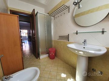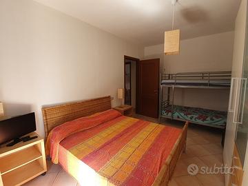 Follonica, zona Pratoranieri, via Litoranea 153, a circa 50 mt dalla spiaggia, libera o attrezzata. Appartamento al piano rialzato con giardino fronte e retro con doccia esterna con acqua calda e fredda e terrazza abitabile con vista mare. L'appartamento è composto da ampio soggiorno con angolo cottura e divano letto matrimoniale, camera con letto matrimoniale + letto a castello e bagno con box doccia. Posto auto privato.